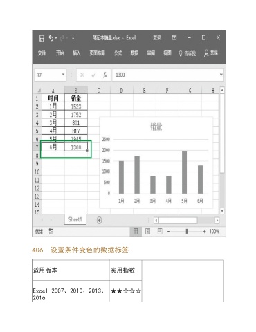 406 设置条件变色的数据标签 适用版本 实用指数 Excel 2007、2010、2013、 ★★☆☆☆ 2016