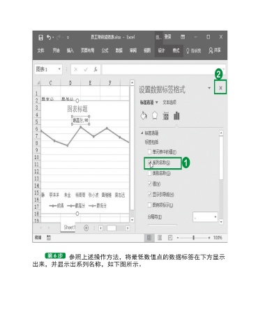 参照上述操作方法,将最低数值点的数据标签在下方显示 出来,并显示出系列名称,如下图所示。