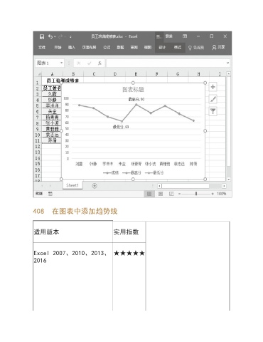 408 在图表中添加趋势线 适用版本 实用指数 Excel 2007、2010、2013、 ★★★★★ 2016