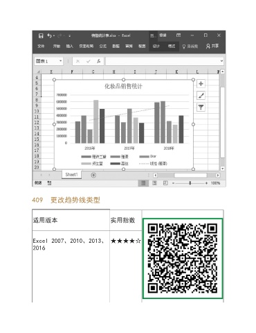 409 更改趋势线类型 适用版本 实用指数 Excel 2007、2010、2013、 ★★★★☆ 2016