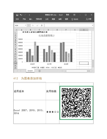 412 为图表添加折线 适用版本 实用指数 Excel 2007、2010、2013、 2016 ★★★☆☆