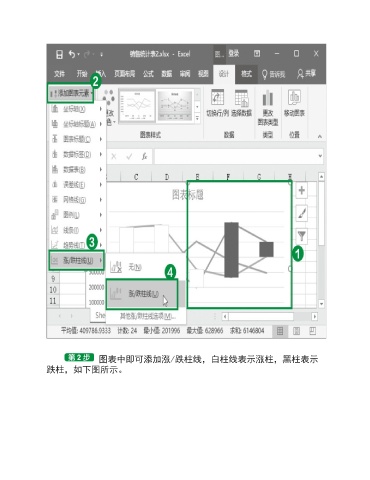 图表中即可添加涨/跌柱线,白柱线表示涨柱,黑柱表示 跌柱,如下图所示。