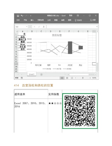 414 改变涨柱和跌柱的位置 适用版本 实用指数 Excel 2007、2010、2013、 ★★☆☆☆ 2016