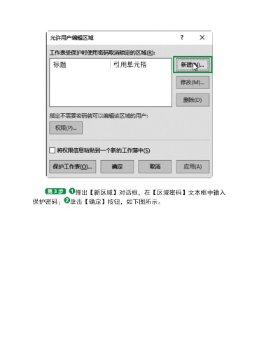 弹出【新区域】对话框,在【区域密码】文本框中输入 保护密码; 单击【确定】按钮,如下图所示。