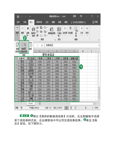 弹出【推荐的数据透视表】对话框,在左侧窗格中选择 某个透视表样式后,在右侧窗格中可以预览透视表效果; 单击【确 定】按钮,如下图所示。