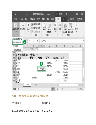 425 更改数据透视表的数据源 适用版本 实用指数 Excel 2007、2010、2013、 ★★★★★