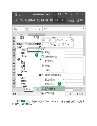 自动新建一张新工作表,并在其中显示选择项目的全部详 细信息,如下图所示。