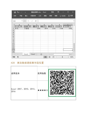 428 更改数据透视表字段位置 适用版本 实用指数 Excel 2007、2010、2013、 2016 ★★★★☆