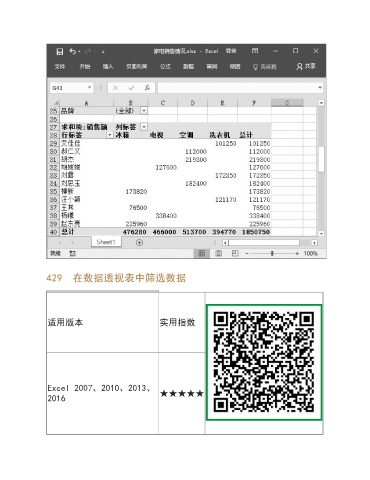 429 在数据透视表中筛选数据 适用版本 实用指数 Excel 2007、2010、2013、 ★★★★★ 2016