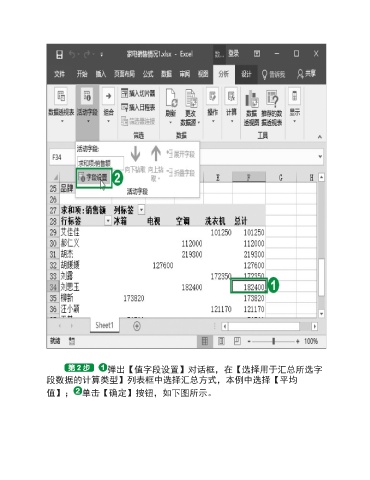 弹出【值字段设置】对话框,在【选择用于汇总所选字 段数据的计算类型】列表框中选择汇总方式,本例中选择【平均 值】; 单击【确定】按钮,如下图所示。
