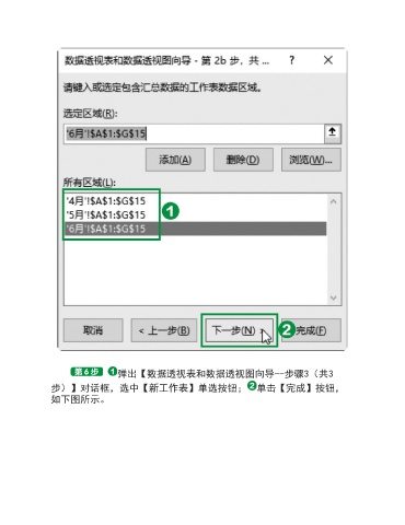 弹出【数据透视表和数据透视图向导--步骤3(共3 步)】对话框,选中【新工作表】单选按钮; 单击【完成】按钮, 如下图所示。