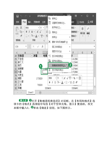 打开【数据透视表选项】对话框,在【布局和格式】选 项卡的【格式】选项组中勾选【对于空单元格,显示】复选框,在文 本框中输入0; 单击【确定】按钮,如下图所示。
