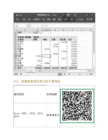 436 隐藏数据透视表中的计算错误 适用版本 实用指数 Excel 2007、2010、2013、 2016 ★★★★☆