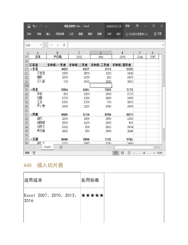 440 插入切片器 适用版本 实用指数 Excel 2007、2010、2013、 ★★★★★ 2016