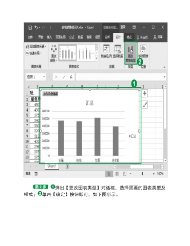 弹出【更改图表类型】对话框,选择需要的图表类型及 样式; 单击【确定】按钮即可,如下图所示。