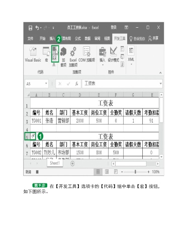 在【开发工具】选项卡的【代码】组中单击【宏】按钮, 如下图所示。