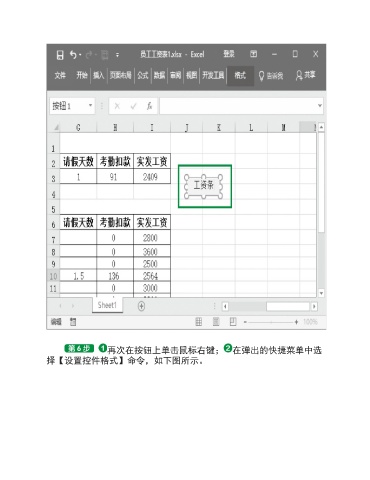 再次在按钮上单击鼠标右键; 在弹出的快捷菜单中选 择【设置控件格式】命令,如下图所示。