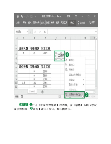 打开【设置控件格式】对话框,在【字体】选项卡中设 置字体样式; 单击【确定】按钮,如下图所示。