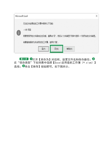 打开【另存为】对话框,设置文件名和保存路径; 在“保存类型”下拉列表中选择【Excel启用宏的工作簿(*.xlsm)】 选项; 单击【保存】按钮即可,如下图所示。
