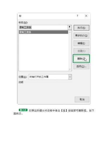在弹出的提示对话框中单击【是】按钮即可删除宏,如下 图所示。