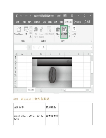 460 在Excel中制作条形码 适用版本 实用指数 Excel 2007、2010、2013、 ★★★★☆ 2016