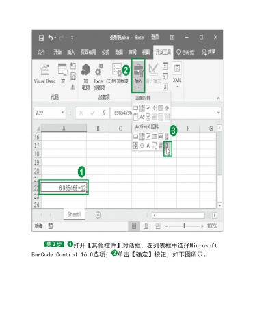 打开【其他控件】对话框,在列表框中选择Microsoft BarCode Control 16.0选项; 单击【确定】按钮,如下图所示。