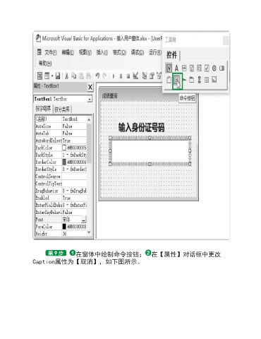在窗体中绘制命令按钮; 在【属性】对话框中更改 Caption属性为【取消】,如下图所示。