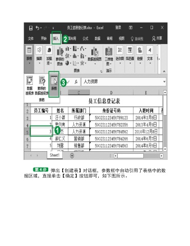 弹出【创建表】对话框,参数框中自动引用了表格中的数 据区域,直接单击【确定】按钮即可,如下图所示。