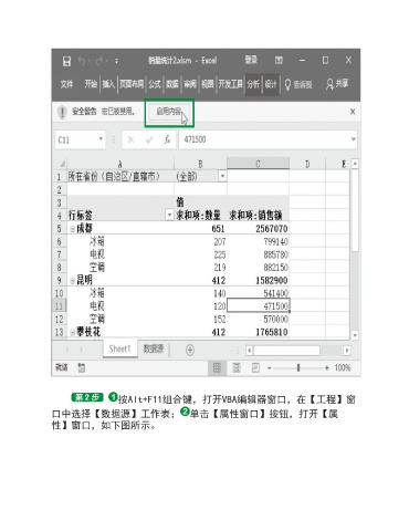 按Alt+F11组合键,打开VBA编辑器窗口,在【工程】窗 口中选择【数据源】工作表; 单击【属性窗口】按钮,打开【属 性】窗口,如下图所示。