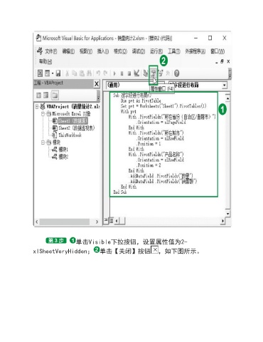 单击Visible下拉按钮,设置属性值为2- xlSheetVeryHidden; 单击【关闭】按钮 ,如下图所示。