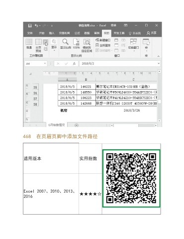 468 在页眉页脚中添加文件路径 适用版本 实用指数 Excel 2007、2010、2013、 2016 ★★★★☆