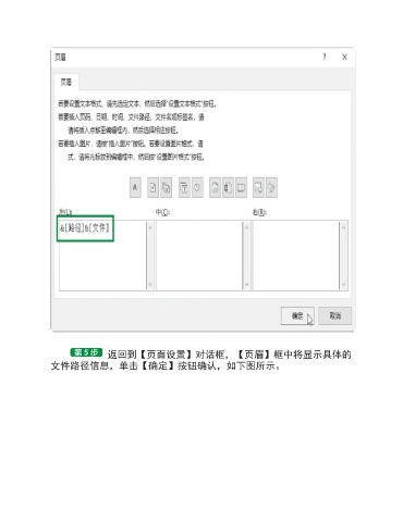返回到【页面设置】对话框,【页眉】框中将显示具体的 文件路径信息,单击【确定】按钮确认,如下图所示。