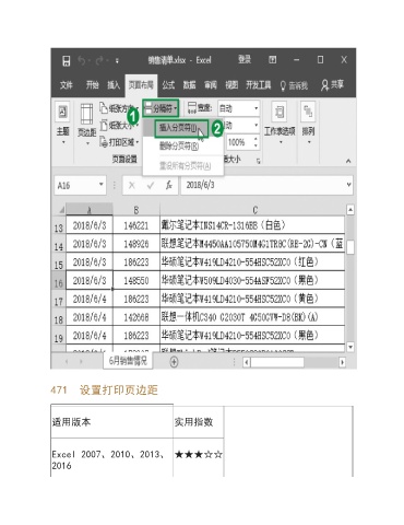 471 设置打印页边距 适用版本 实用指数 Excel 2007、2010、2013、 ★★★☆☆ 2016