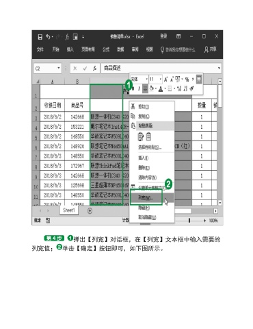 弹出【列宽】对话框,在【列宽】文本框中输入需要的 列宽值; 单击【确定】按钮即可,如下图所示。
