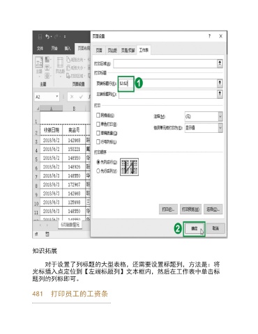 知识拓展 对于设置了列标题的大型表格,还需要设置标题列,方法是:将 光标插入点定位到【左端标题列】文本框内,然后在工作表中单击标 题列的列标即可。 481 打印员工的工资条