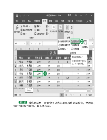 操作完成后,所有含有公式的单元格将显示公式,然后再 执行打印操作即可,如下图所示。