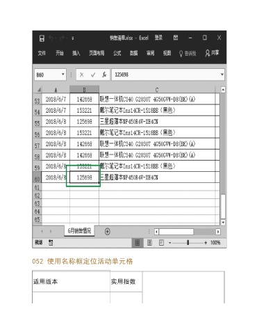 052 使用名称框定位活动单元格 适用版本 实用指数