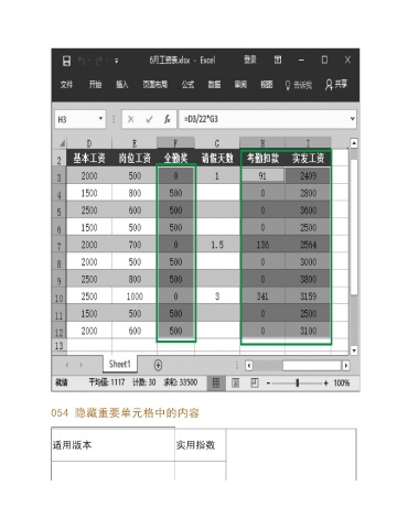 054 隐藏重要单元格中的内容 适用版本 实用指数