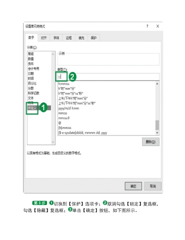 切换到【保护】选项卡; 取消勾选【锁定】复选框, 勾选【隐藏】复选框; 单击【确定】按钮,如下图所示。