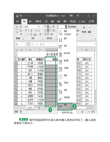 操作完成后即可在单元格中输入身份证号码了,输入后的 效果如下图所示。