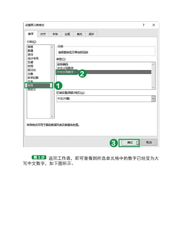 返回工作表,即可查看到所选单元格中的数字已经变为大 写中文数字,如下图所示。