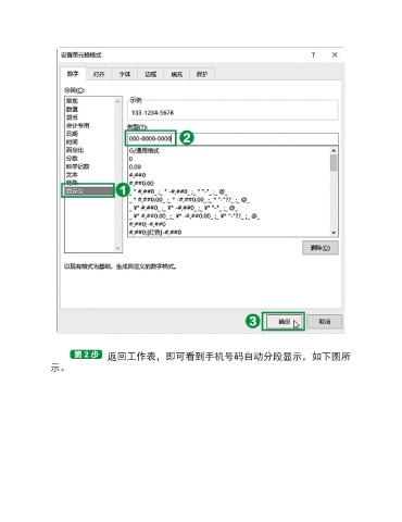 返回工作表,即可看到手机号码自动分段显示,如下图所 示。