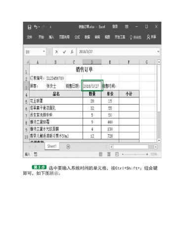 选中要输入系统时间的单元格,按Ctrl+Shift+;组合键 即可,如下图所示。