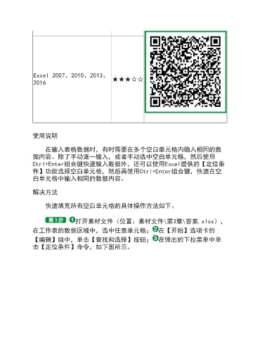 Ctrl+Enter组合键快速输入数据外,还可以使用Excel提供的【定位条