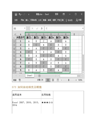 073 如何自动填充日期值 适用版本 实用指数 Excel 2007、2010、2013、 ★★★☆☆ 2016