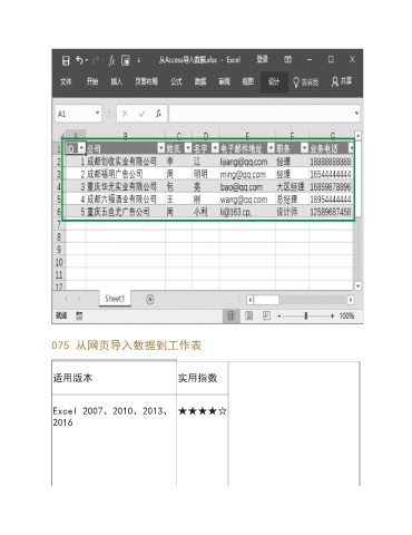 075 从网页导入数据到工作表 适用版本 实用指数 Excel 2007、2010、2013、 ★★★★☆ 2016
