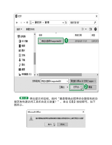 弹出提示对话框,询问“是否替换此程序的全部现有的功 能区和快速访问工具栏自定义设置?”,单击【是】按钮即可,如下 图所示。