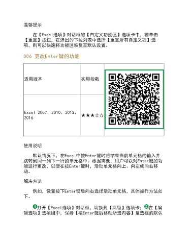 跳转到同一列下一行的单元格中。根据需要,用户可以对Enter键的功