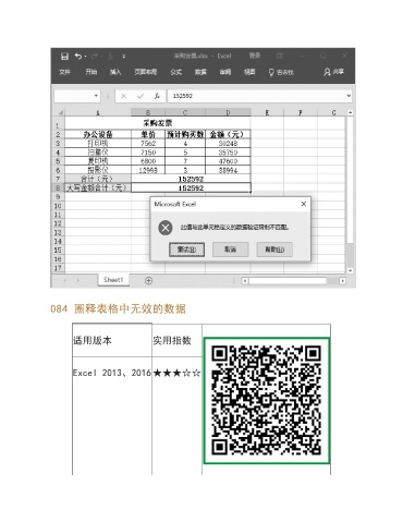 084 圈释表格中无效的数据 适用版本 实用指数 Excel 2013、2016★★★☆☆
