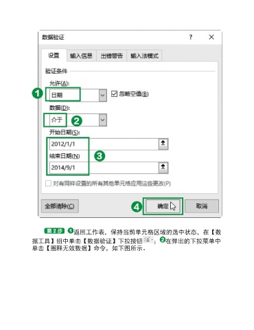 返回工作表,保持当前单元格区域的选中状态,在【数 据工具】组中单击【数据验证】下拉按钮 ; 在弹出的下拉菜单中 单击【圈释无效数据】命令,如下图所示。